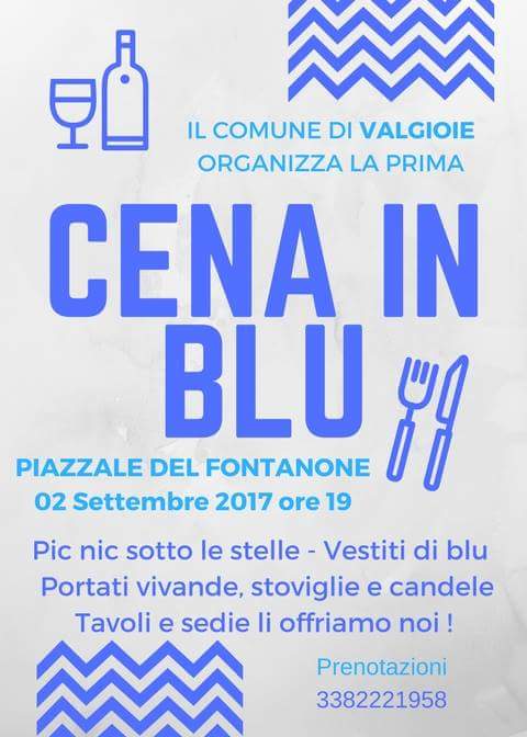 vestiti in BLU e porta vivande, stoviglie e candele coordinate.
